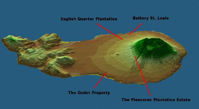 Battery St. Louis on the Atlantic side and near English Quarter Plantation was also investigated during 2000-2001. I.O.A. students mapped and conducted surface collections at the military site. It is imperative that the battery sites be assessed and protected as the cliff-top placement allows the normally devastating affects of goat and cow hooves to be much more detrimental. Without the current research much data would be lost at these sites.