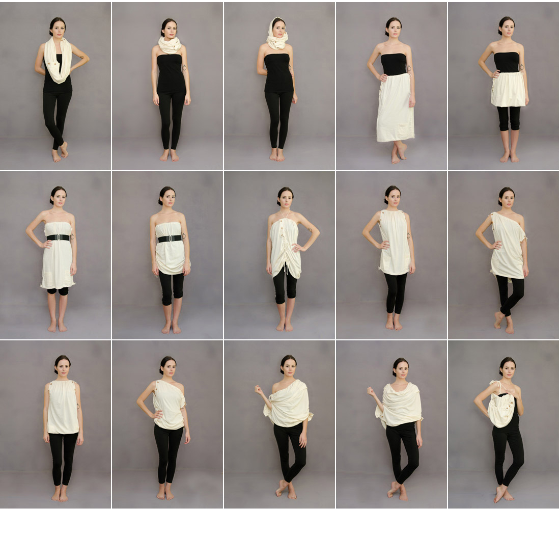 Are you a trend starter? Do you love fashion? Are you concerned about our environment and have the urge to make a difference in our world? If you answered “yes” to all those questions, than look no further my dear friends! A couple of AWESOME gals over at the All of Us Revolution blog has just created, dare I say it? – the best fashion piece I have ever laid my eyes upon? What’s even more AWESOME is that it’s made with 100% recycled fabric and can be worn 15 WAYS? Yeah, you heard it right! This piece can be worn 15 different ways – you can pack less the next time you go vacationing!